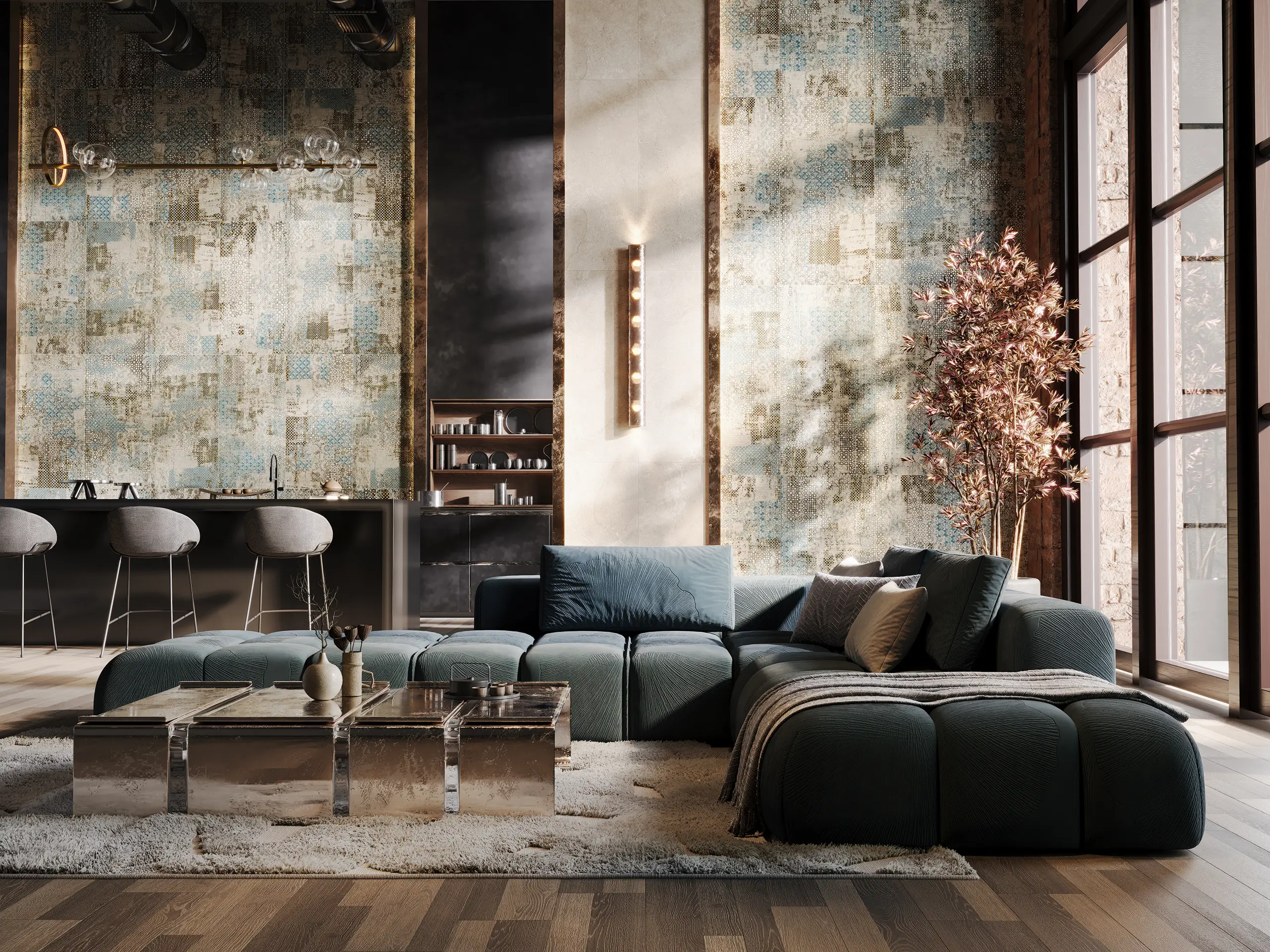 обладает фактурой пэчворка,
