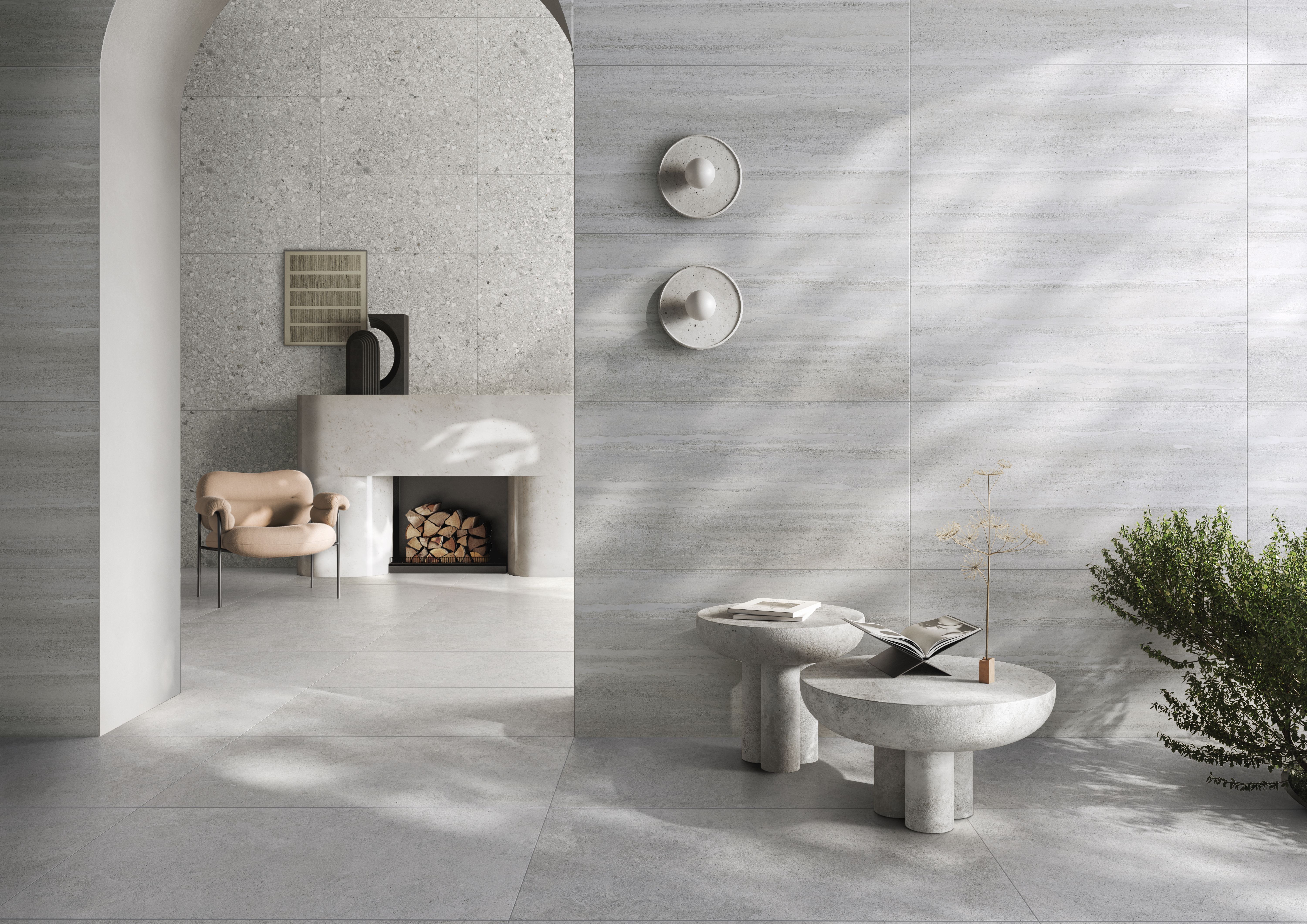 Плитка керамогранит СтоунСистем K948096R Боргония Линейный Серый матовый